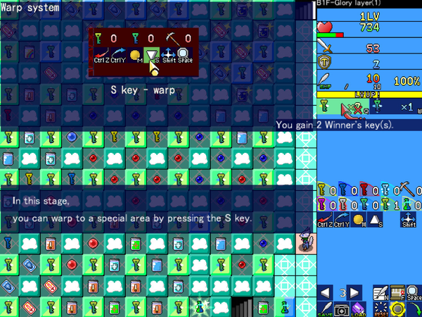 Multiple keys unlock different routes, and you must figure out which routes to take, given what you have in a level so far. All combat is handled simply by bumping into the enemy and letting the stats do the talking.