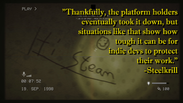 “[S]ituations like that show how tough it can be for indie devs to protect their work,” says Steelkrill. “I still love what I do, but it’s definitely getting harder on most parts.”