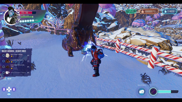 The cooking minigame is a significant part of HANGRY. It’s done at the end of mainline quests, but players are also free to cook for their own benefit using either found recipes or experimentation. Well-made dishes give experience, but can also grant permanent stat bonuses, making them key for more powerful builds.