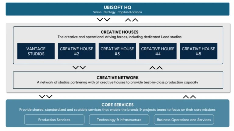 Four other “creative houses” are being planned, each one being organised around a genre. So far, they have not been given names, but underneath those there will be a “creative network” of studios that partner with the main teams, and then below that there’s core services.