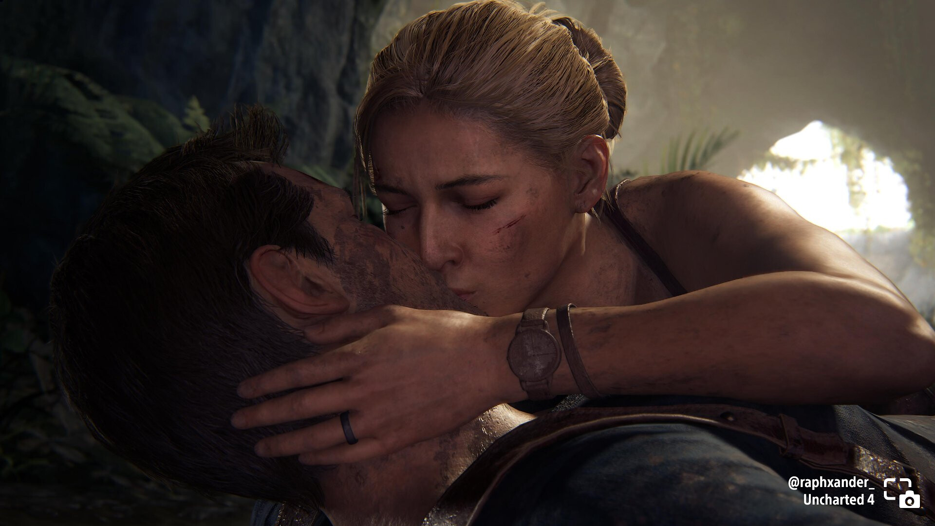 raphxander_ shares Nate and Elena sharing a kiss in Uncharted 4